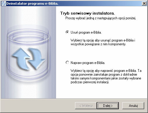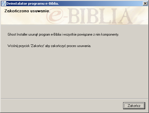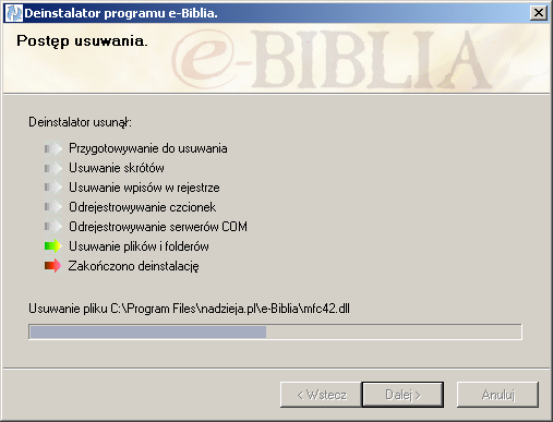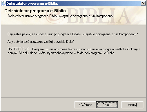 nazwie „Usuń e-Biblię”. Jej wybranie bezpośrednio uruchamia